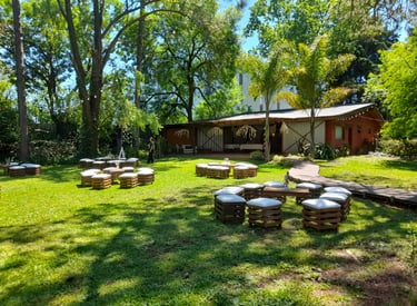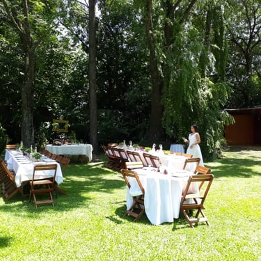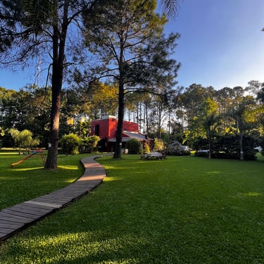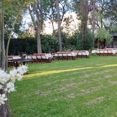 Abrimos las puertas de un hermoso parque con una arboleda de ensueño para tu evento, salón cubierto con cocina completa para catering, parrillas y alojamiento. Estacionamiento dentro del predio.